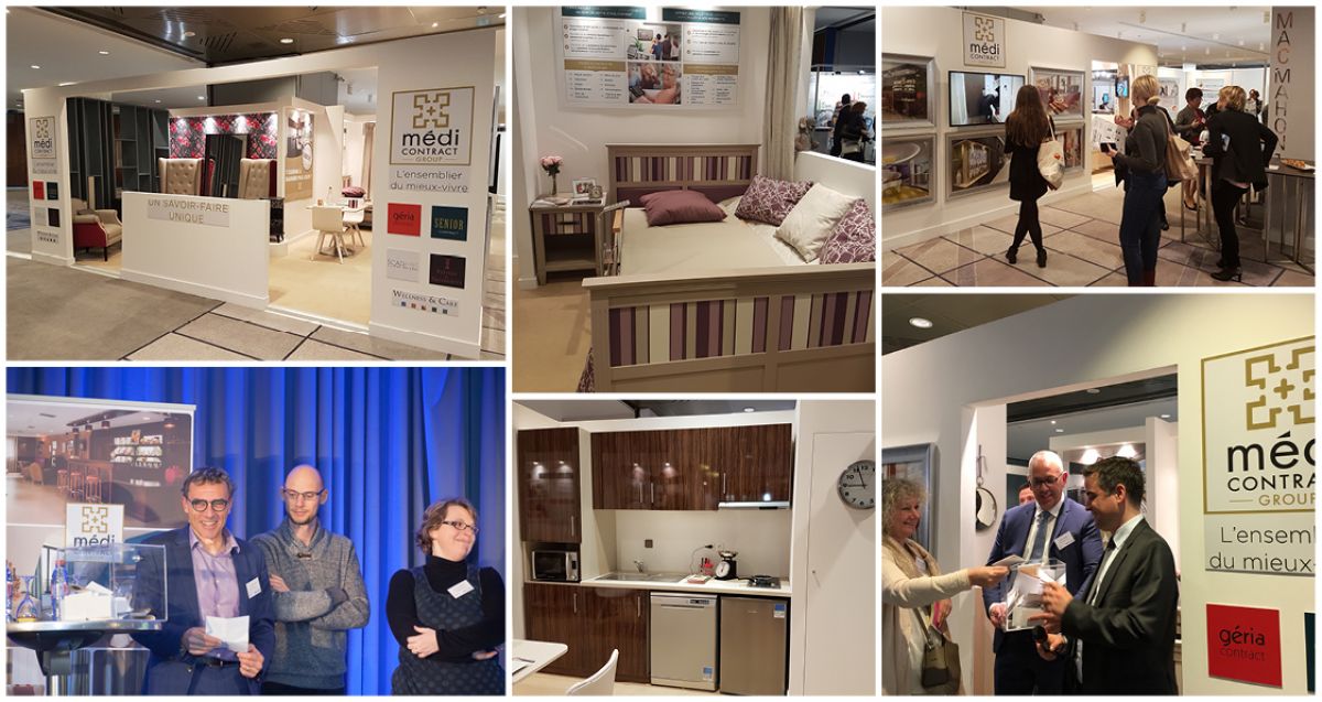Médi-Contract Group a participé aux Assises Nationale des EHPAD, Logements-Foyers et Résidences Seniors les 23 & 24 Mars dernier au Méridien Etoile, à Paris. Le groupe a une nouvel fois présenté au sein d’un espace de 30m2 l’étendue de son métier d’ensemblier et son caractère innovateur en s’appuyant sur une mise en scène très raffinée : design unique de fauteuils majestueux et ambiance cosy d’un salon autour de cheminées au foyer vidéo virtuel, qualité de l’outil industriel illustré par une cuisine toute équipée, adaptabilité et bienveillance dans l’effort du senior et du personnel avec des systèmes monte-et-baisse ou le lit électrique multifonctions, dynamisation du lien social et de la communication avec sa plateforme numérique de service. Si le congrès a rassemblé près de 250 participants, notre espace a suscité beaucoup d’intérêt et de demandes d’informations des visiteurs, avec en prime plus de 70 participants et 2 gagnants à notre Jeu Tirage au Sort pour gagner une Cuisine Toute Equipée. Autant de solutions que vous pouvez découvrir ou redécouvrir sur notre site internet www.medicontractgroup.com . Alors n’hésitez pas à nous contacter pour partager vos projets à venir et nous construirons ensemble l’ambiance et l’espace que vous attendez.
